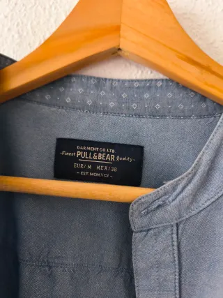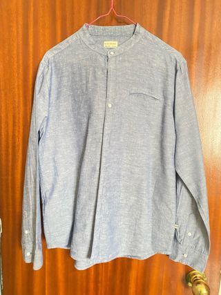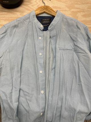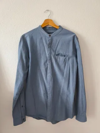 Camisa Zara azul cuello mao