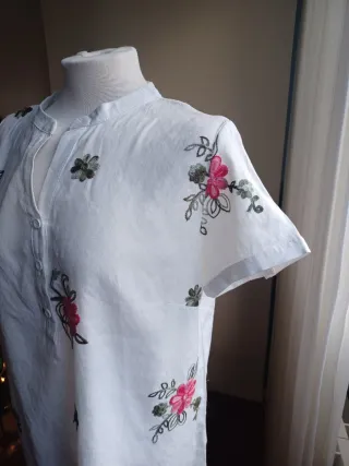 Camisa blanca cuello mao bordada flores Manga cort