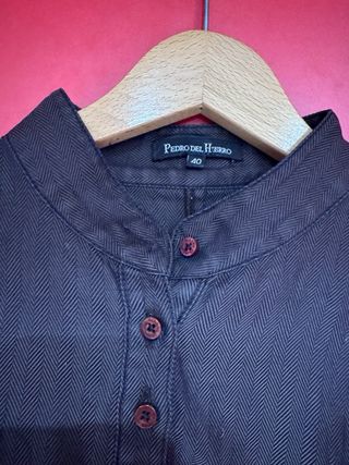 Camisa de manga larga marca Roger, de hombre, talla S, estampada, en colores morado y azul marino, cuello mao. Está nueva, perfecto estado, sin uso. Tiene una pequeña manchita, que seguramente se vaya al lavarla. 📏 Medidas: - Largo 71 cm - Sisa 47 cm - Ancho hombros 40 cm - Manga 65 cm 🔎 Composición: - 65% poliéster - 35% algodón