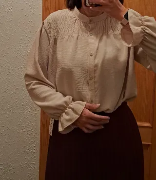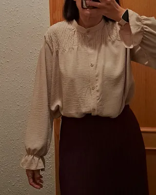 Camisa beige con cuello mao y volantes