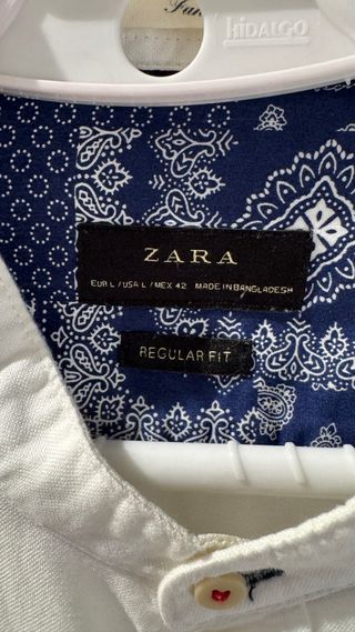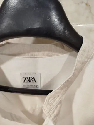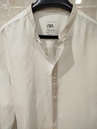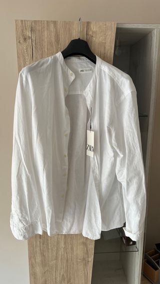 Camisa Zara Lino Blanca Cuello Mao