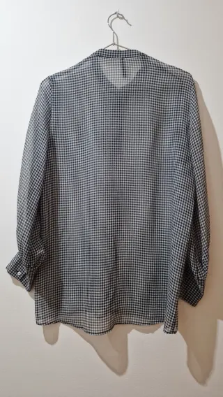 Camisa de cuadros con un diseño oversize. Es cómoda y versátil. - Cuello mao. - Manga larga abullonada. - Cierre de botones.