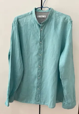 Camisas de lino (80%) y algodón (20%) talla XL con cuello mao. Precio unitario. 1ª Manga corta color azul claro 2ª Manga larga en color verde oliva 3ª Manga larga color Beige. Igual que nuevas.