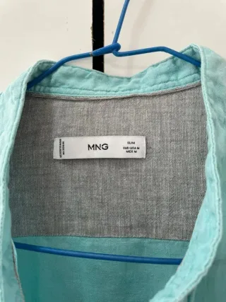 Camisa de manga larga de la marca Mango en color azul verdoso. - Cuello mao. - Cierre de botones. - Tejido ligero.