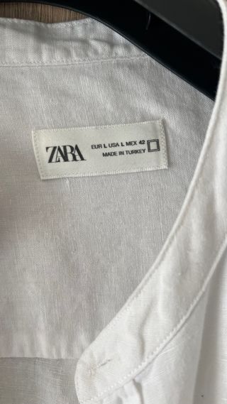 Camisa de lino de Zara. - Material: Lino - Color: Blanco - Talla: L (42-44 / 52-54) - Corte: Relaxed Fit - Cuello: Mao
