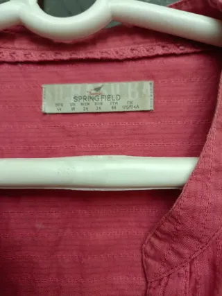 Camisa de manga larga de la marca Springfield en color rosa. Presenta un diseño con cuello mao y botones. - Cuello mao. - Cierre de botones. - Bolsillos en el pecho. - Puños abotonados. Talla 44 pequeña
