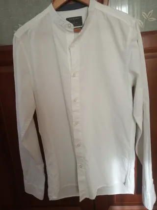 Camisa blanca algodón cuello mao Talla S