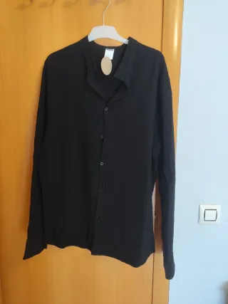 Camisa de Zara de manga larga con cuello mao. - Tejido ligero y con textura. - Cierre de botones. - Puños abotonados.