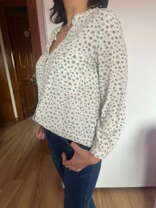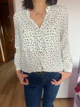Camisa Zara Hojas Cuello Mao Talla M
