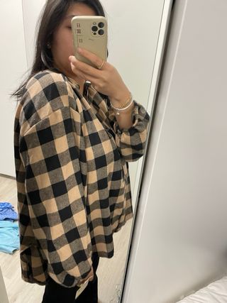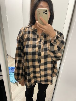 Camisa cuadros oversize beige y negro