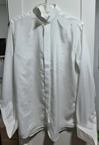 Camisa de manga larga con cuello mao. Camisa blanca cuello mao para niño, marca LFT. Talla 11-12, 152cm, un poco justa yo diria que para 10 años. - Cierre de botones. - Bolsillo en el pecho.