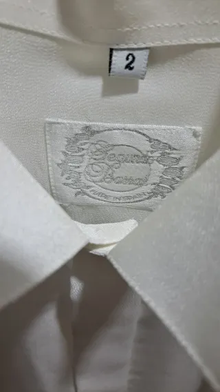 Elegante camisa de ceremonia de la marca Segundo Barral. - Color blanco. - Cuello mao, para pajarita o pañuelo - Puños para gemelos - Tejido satinado Una puesta