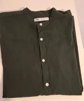 Camisa Zara Lino Verde Oscuro Talla 40