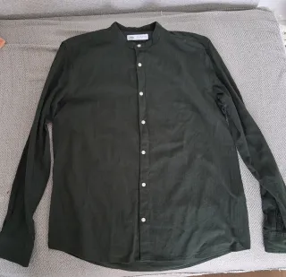 Camisa cuello mao Pull&Bear verde militar XS