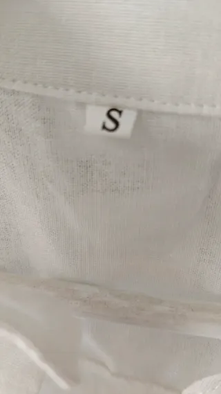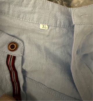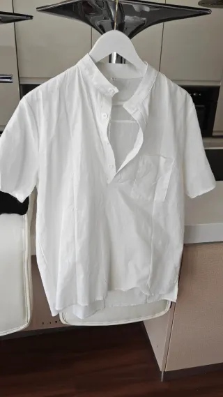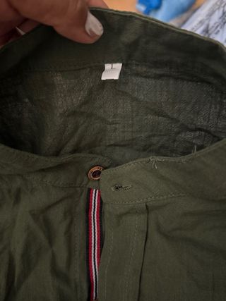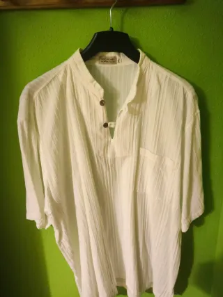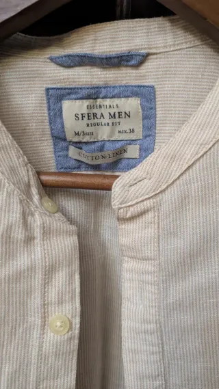 Camisa de lino con cuello mao y cierre de botones tipo henley. Marcada como talla S, pero da talla como una M. 70% lino - 30% algodón Es de tejido ligero y transpirable con el diseño arrugado característico del lino. La vendo porque me queda grande