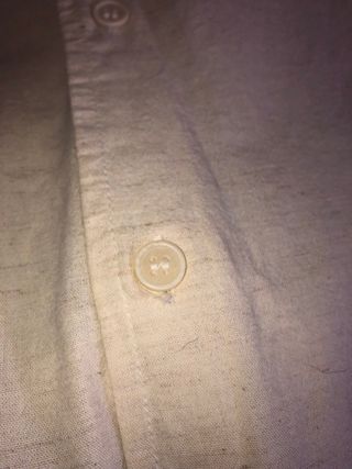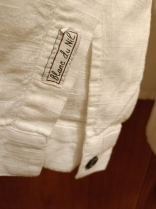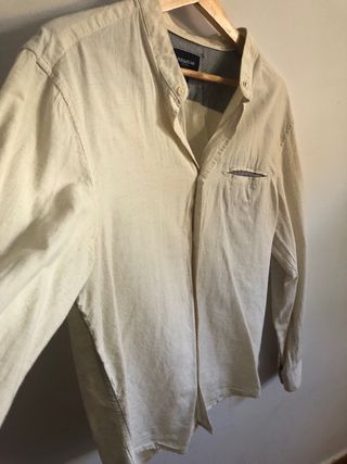 Camisa de manga larga de la marca Springfield. -Es de lino - Sin cuello o cuello Mao. -Con detalle bordado en el pecho. - Color beige. - Talla L.