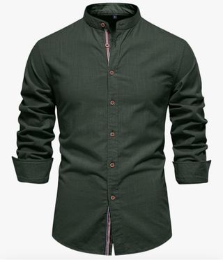 Camisa de manga larga en color verde, con cuello mao. - Cierre de botones. - Puños con botón. - Tejido ligero.