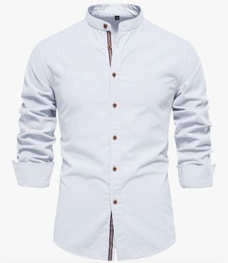 Camisa de manga larga con cuello mao. - Cierre de botones. - Tejido ligero y transpirable.