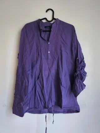 Camisa de Zara en color morado. Presenta un diseño con cuello mao y cierre de botones. - Mangas largas enrollables con botón. - Bolsillos frontales. - Detalle de fruncido en la pechera. - Cordón ajustable en el bajo.