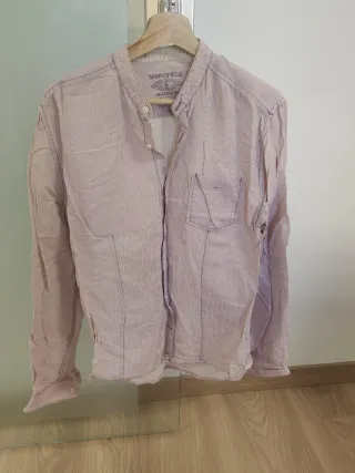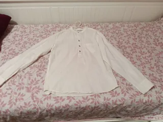 Camisa de manga larga con cuello mao. En buen estado, ha tenido poco uso. Más camisas en mi perfil. - Tejido ligero. - Cierre de botones. - Bolsillo en el pecho.