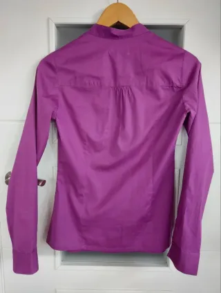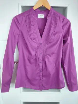 Camisa de manga larga con un diseño elegante y detalles de plisado en la parte delantera. De la firma Springfield, en talla S. - Cuello mao. - Cierre de botones. - Tejido de algodón. Hago envíos, también se puede recoger en calle Jaime el Conquistador (28045, cerca de los metros Legazpi y Delicias).