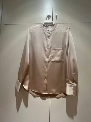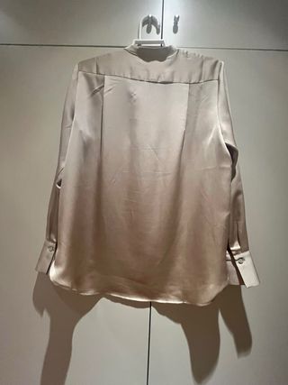 Camisa de Zara de manga larga de cuello mao en color beige. Talla L. En buen estado. - Cuello mao. - Cierre de botones. - Puños abotonados.