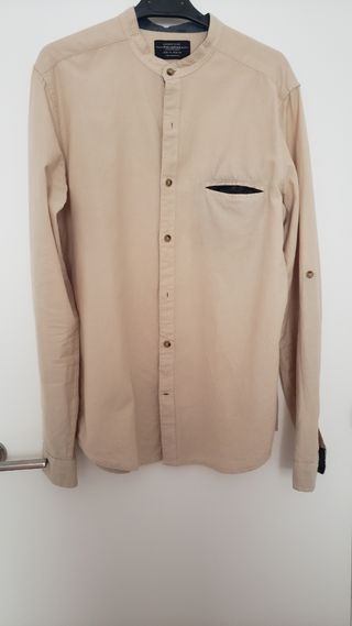 Camisa de caballero de manga larga de la marca Zara - Cuello mao. - Cierre de botones. - Detalle de tela en la tapeta,cuello y puño. -Boton en la manga para trabilla interior