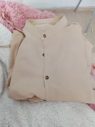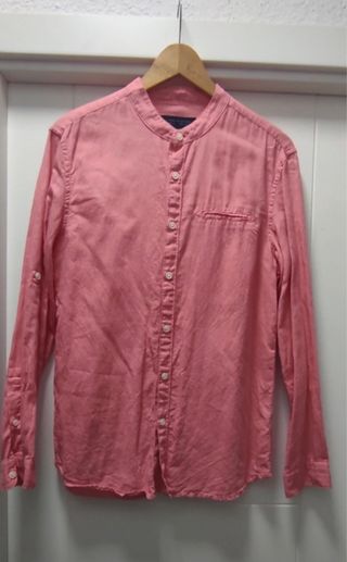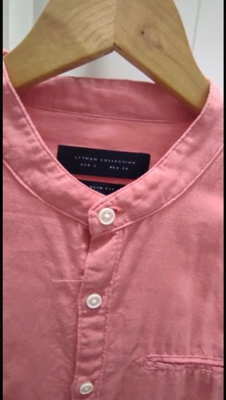 Camisa cuello mao 68% algodón y 32% lino. Se puede lavar en la lavadora. Talla S de Lefties. Color coral.
