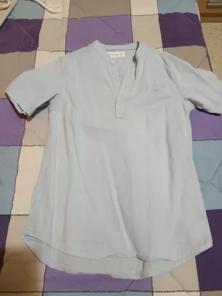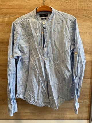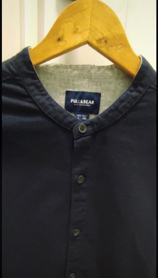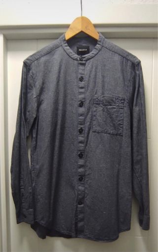 Camisa cuello mao 100% algodón. Se puede lavar en la lavadora. Talla L de Pull and Bear. Color azul marino.