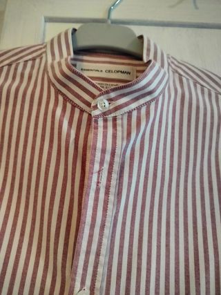 Camisa de manga larga con cuello mao. - Diseño a rayas finas. - Cierre de botones. - Tejido ligero. Precio negociable