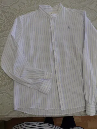 Blusa hombre rayas blanco y rosa(palo)muy bonita y juvenil..cuello mao,talla S. Algodón muy cómoda. Comprada en Celop Man. Muy poco uso.. prácticamente nueva. Perfecto estado.