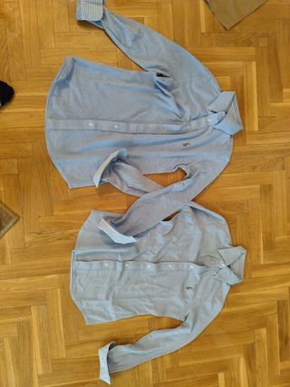 Dos camisas de la marca Hackett, color azul. Son de algodón y parecen estar en buen estado. - Talla: No especificada en la imagen. - Manga larga. - Estilo casual.