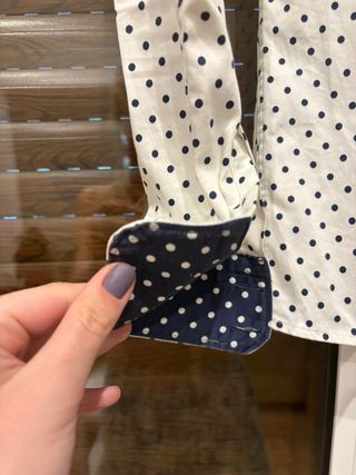 **Envíos en 24h en días laborables** En topos blancos sobre azul muy oscuro. Muy buen estado. Conserva todos los botones originales. Excelente confección en tejido 100% algodón. Id 227