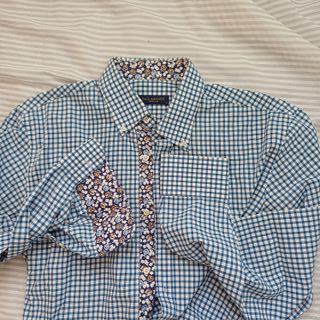 Camisa gran calidad y diseño. Manga larga, detalle de rombos en redondas, tonos azules y blancos. Prenda muy fresca y cómoda, ideal para el día a día con camiseta, y para temporada de calor sin camiseta. Frescor en cuerpo. Perfecto estado. - Cuello camisero con detalle, bordeando el mismo con una elegante y moderna costura azul. - 10€ (rebajada de 80€)