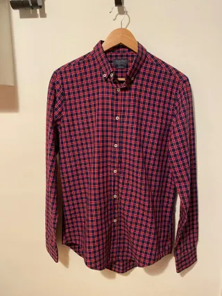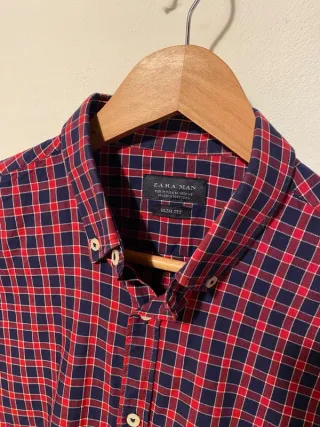 Camisa de cuadros Zara Talla M Slim Fit en color azul marino y rojo Material: algodón y poliéster
