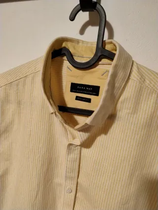 Camisa de rayas Zara Talla M Regular Fit en color amarillo y blanco. Manga corta Material: 100% algodón