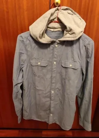 Camisa vaquera de manga larga con capucha gris integrada (efecto sudadera) de H&M. 🧵 Material: Cuerpo 100% Algodón. Capucha mezcla suave de algodón. ⚠️ SOBRE LA TALLA: La etiqueta marca 14Y+ (170 cm) de niño, pero por medidas equivale perfectamente a una Talla XS o S de hombre. Ideal para adolescentes o chicos delgados. ✨ Detalles: 2 bolsillos en el pecho y botón en la manga para llevarla remangada. ✨ Estado: Muy bueno. 💡 Ideal para combinar con vaqueros o chinos. ¡Haz lote y ahorra! ⚠️ INFORMACIÓN: 📦SOLO HAGO ENVÍOS (Wallapop Envíos). Rápido y seguro. ⛔ No entrego en mano. #HM #CamisaNiño #Talla14 #170cm #ModaJoven