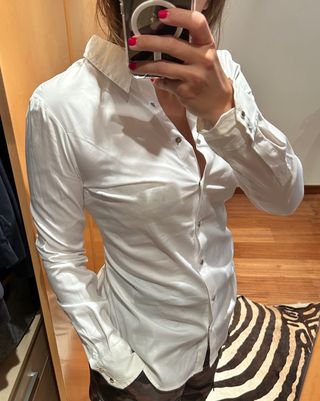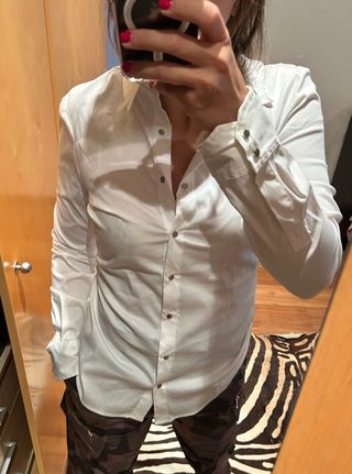 Camisa blanca, talla XS, Zara. Nuevo con etiquetas. Composición: 77% algodón, 10% poliamida y 4% elastano.