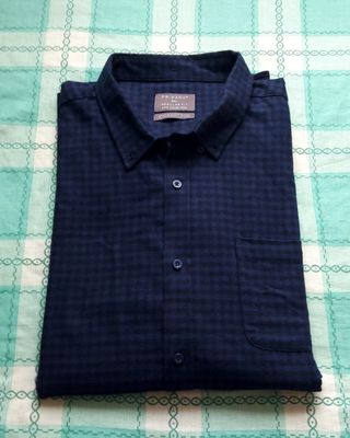 Camisa nueva a estrenar, nunca usada. Talla XXXL, a cuadros, material 100% algodón. En algunas fotos sale de color más claro, pero es el más oscuro.