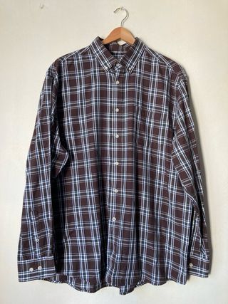 Camisa casual/sport de cuadros para hombre. 33% algodón 75% poliéster. Marrón con detalles en azul plomo. Como nueva. Talla XXL. Medidas: sisa 64 cm, hombro 54 cm, largo 80 cm. Marca TEX.