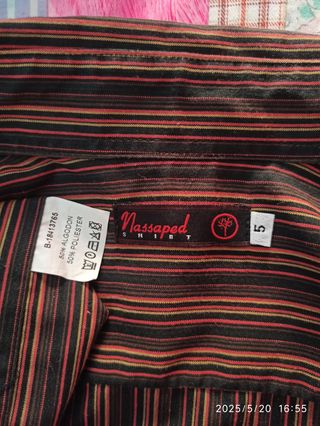 Preciosa camisa de hombre a rayas de la marca Nassapped. Está en muy buen estado y lista para usar. - Talla: 21 - 50% algodón, 50% poliéster - Diseño de rayas verticales en tonos marrones y negros.