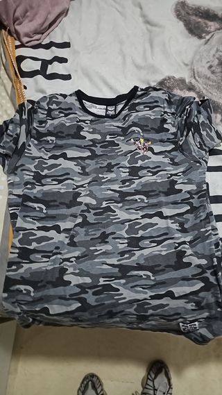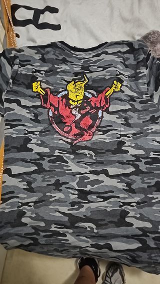Camiseta Thunderdome de camuflaje en tonos grises y verdes. Está mal el logo solo - Diseño militar. - Talla única (ver medidas en fotos) - 100% algodón (se recomienda comprobar la etiqueta para confirmar)