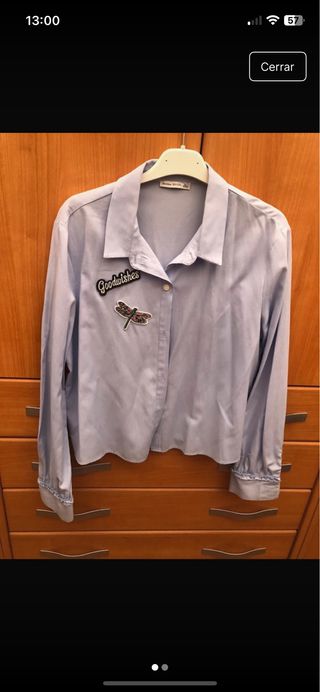 Camisa de algodón con un diseño original. - Parche de Good wishes en la solapa. - Parche de libélula bordada. - Cuello camisero. - Puños con detalle. - Cierre de botones.
