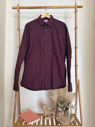 Camisa hombre con estampado de lunares Color: berenjena/burdeos y blanco Marca: Mango 100% algodón Talla: L - Slim fit Nuevo sin etiquetas