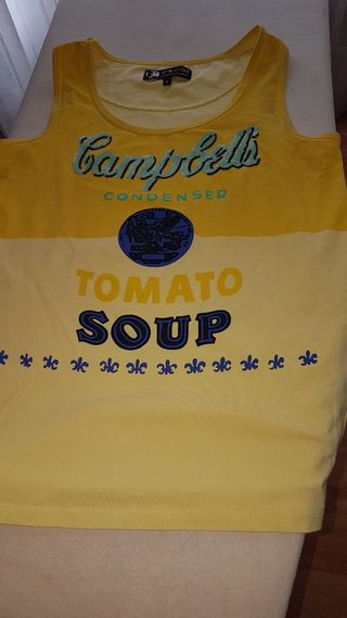 camiseta sin mangas. varios tonos amarillos. letras lentejuelas. algodon