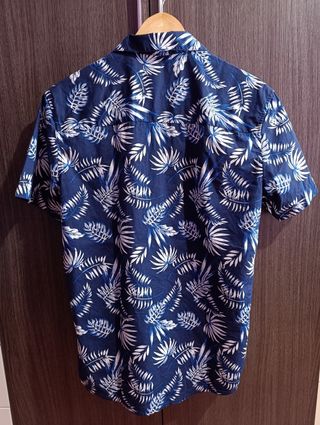 Preciosa camisa de manga corta con estampado multicolor de paisajes marinos y una camiseta de color teja. La camisa luce impecable y la camiseta está en perfecto estado. - Camisa con un diseño único. - Estampado de paisajes marinos. - Cierre de botones. - Manga corta. - Talla de chico. - Incluye una camiseta de algodón.