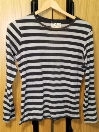 . 🌿 Calidad y Sostenibilidad Material: 100% Algodón Orgánico, suave al tacto y respetuoso con el medio ambiente. Fabricación: Confeccionada con calidad en Portugal (según etiqueta de marca "TRE M 28"). Cuello: Redondo con ribete en color oscuro/marino. Patrón: Rayas horizontales clásicas.