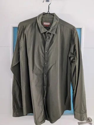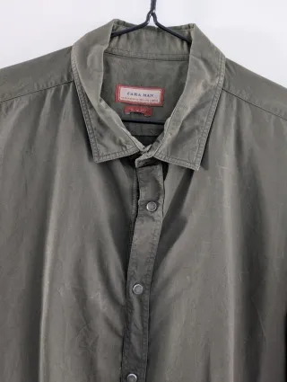 Vendo camisa de manga larga de Zara Man. Color verde oliva/ verde militar. - Cuello clásico. - Cierre de botones a presión. - Puños abotonados. - Corte Slim. - 100% algodón.