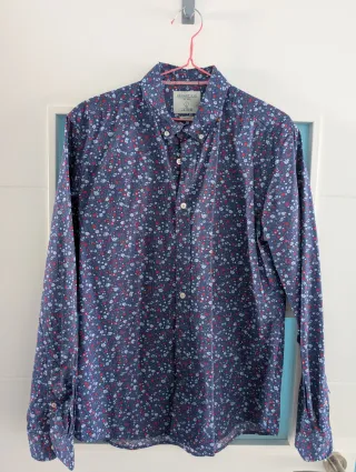 Vendo camisa de Fórmula Joven (El Corte Inglés). De manga larga con estampado floral. - Diseño con flores en tonos azules y blancos. - Cuello camisero. - Cierre de botones. - Corte Slim. - Talla 3. - 100% algodón.