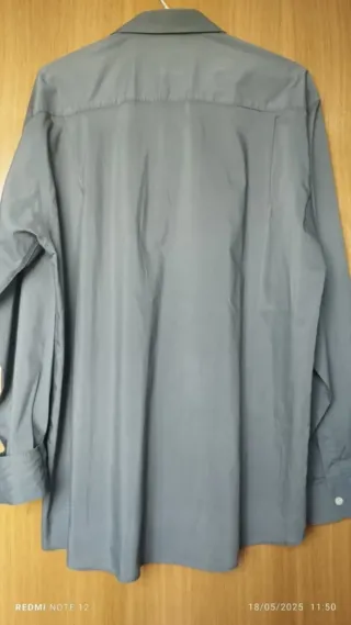Lote 3 camisas de manga larga de hombre TALLA L, prácticamente nuevas. - Azul marino con topos blancos ajustada. - Gris lisa algodon 100% algodón cuello mao. - Gris estampada cuello mao. -------- REGALO 🎁: - Polo blanco manga corta. - Camisa fina azul marino.